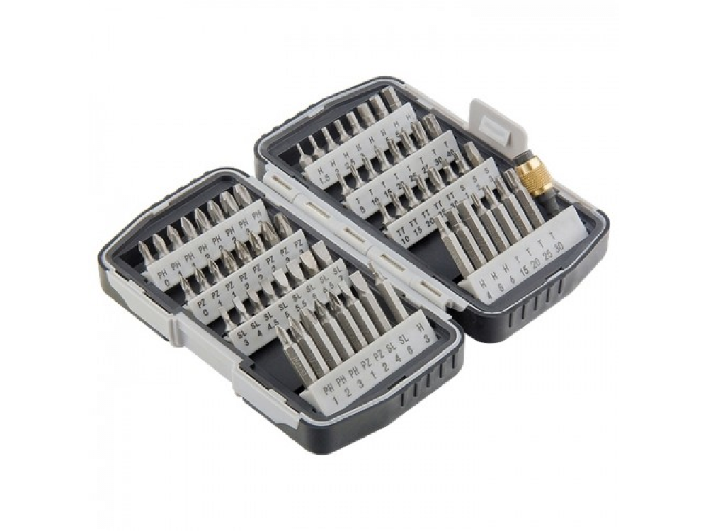 РН № 0, 1, 2, 3; РZ № 0, 1, 2, 3; SL 3, 4, 4.5, 5, 5.5, 6, 6.5, 7 мм; HEX 1.5, 2, 2.5, 3, 4, 5, 5.5, 6; TORX 8, 10, 15, 20, 25, 27, 30, 40; ТТ 10, 15, 20, 25, 30; R 1, 2, 3;